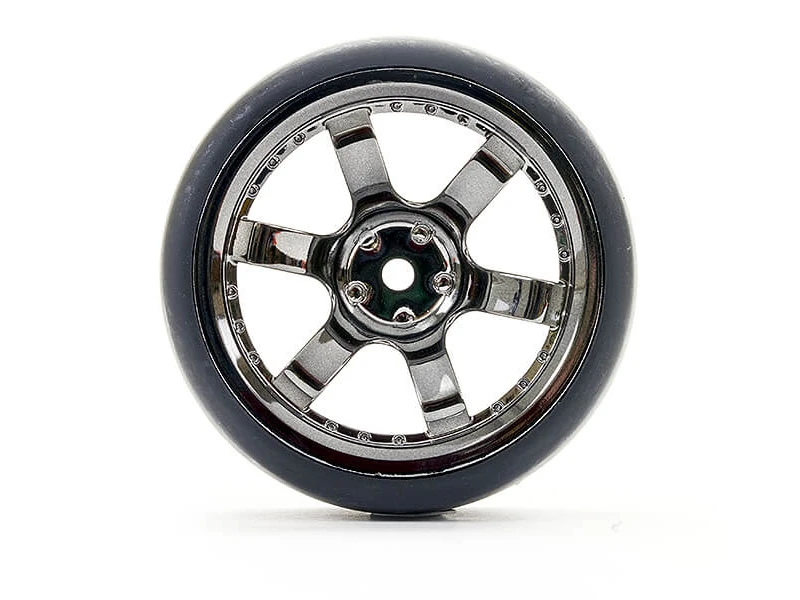 Fastrax 1/10 (4) Drift D1 Tyre W/3mm 6spoke Wheel Bk Chrome