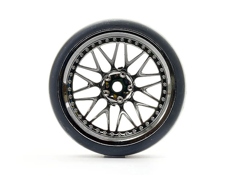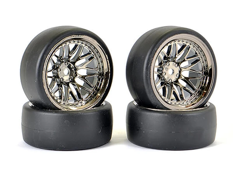 Fastrax 1/10 (4) Drift D1 Tyre W/9mm 20spoke Wheelbk Chrome