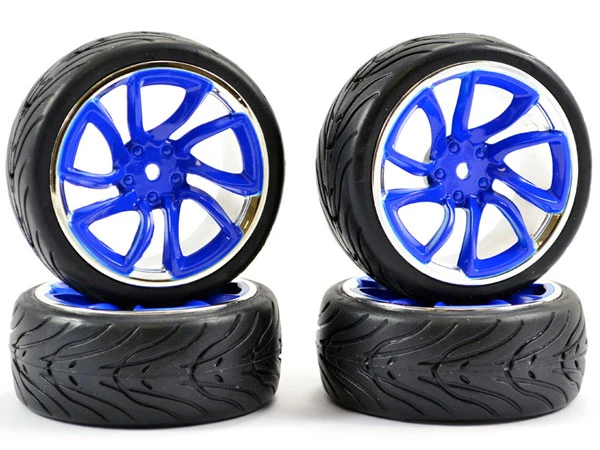 Fastrax 1/10 Street/ Tread Tyre Tri-5 Blue and Chrome Wheels