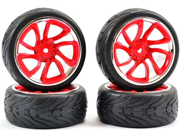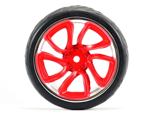 Fastrax 1/10 Street/ Tread Tyre Tri-5 Red and Chrome Wheels
