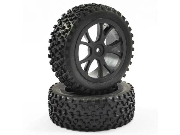 Fastrax 1/10th Mounted Cuboid Black Buggy Wheels and Tyres – Front