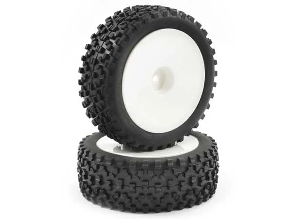 Fastrax 1/10th Mounted Cuboid White Dish Buggy Wheels and Tyres – Front