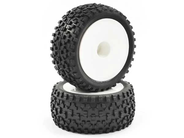 Fastrax 1/10th Mounted Cuboid White Dish Buggy Wheels and Tyres – Rear