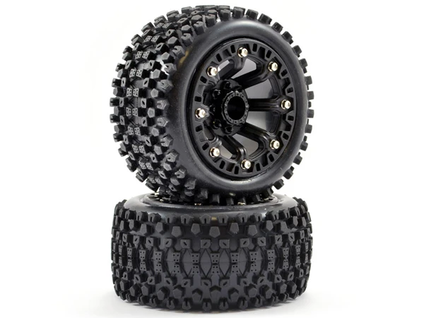 Fastrax 1/10th Mounted Cuboid Black Buggy Wheels And Tyres – Front