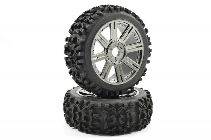 Suitable for all 1/8 off road buggy applications with 17mm hex adaptors. Available in white, black and black chrome. Sold as pair.