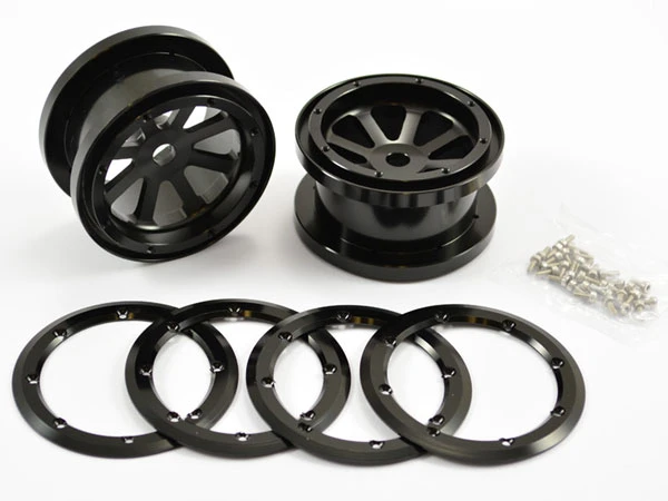 Fastrax 2.2 8 Spoke Black Alloy Beadlock Wheels (2) for the Axial Wraith
