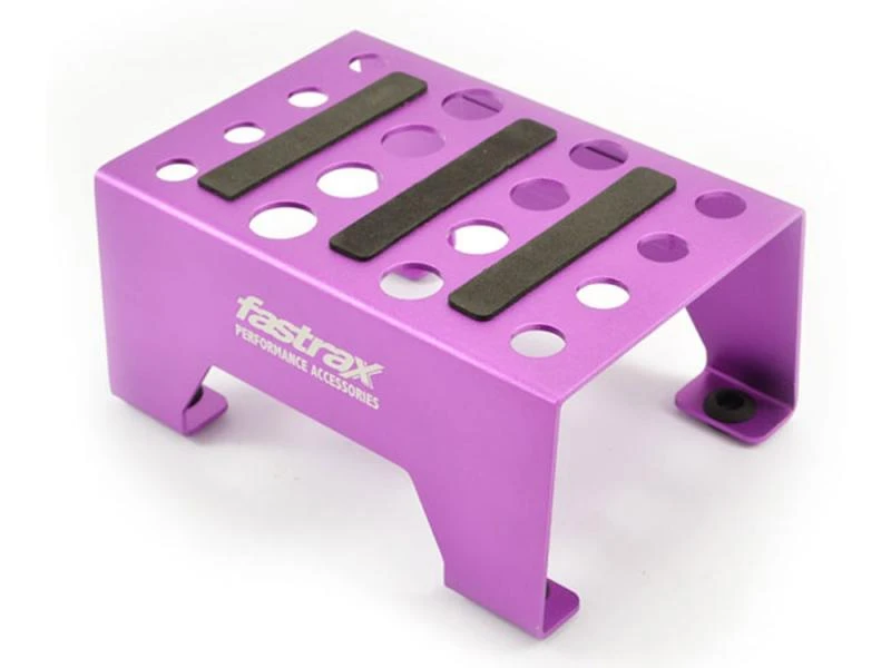 The Fastrax car stand is perfect for performing maintenance on your RC vehicle. The rubber feet hold the stand in place allowing you to work on your 1/10th or 1/8th car while the magnetic side strip can safely hold tools or screws so they are always to hand.
